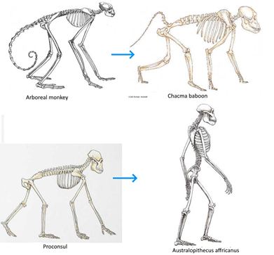 Figure 1: Arboreal monkey and ape body plans diverged on the savanna